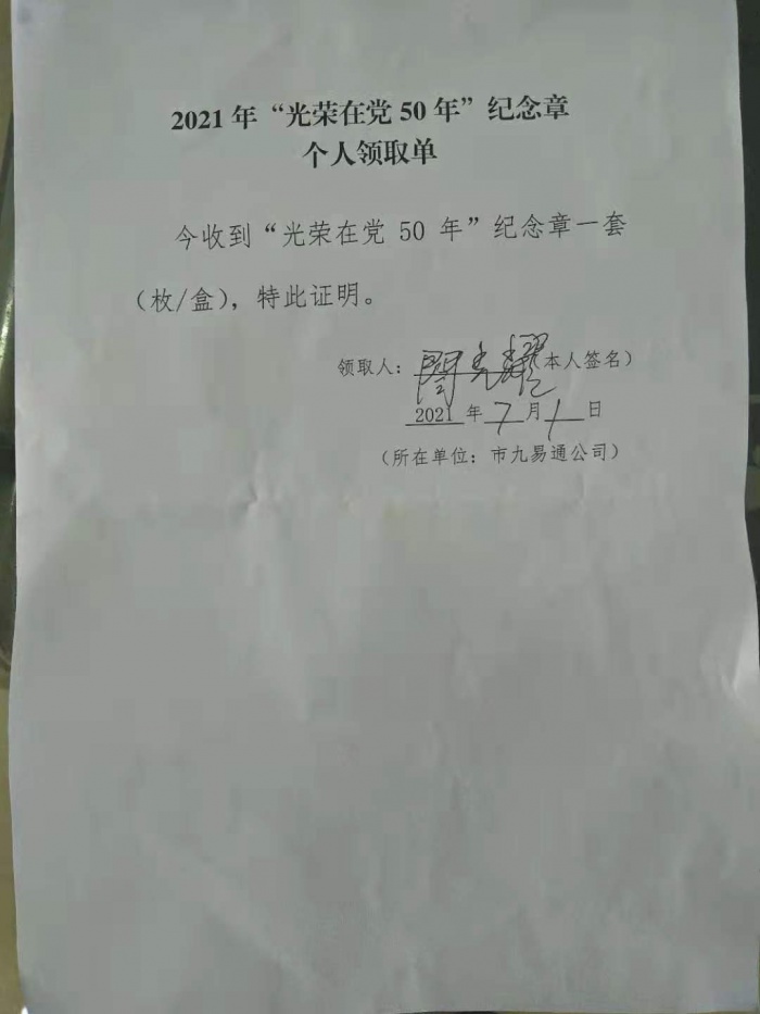 頒發(fā)在黨50年紀(jì)念章